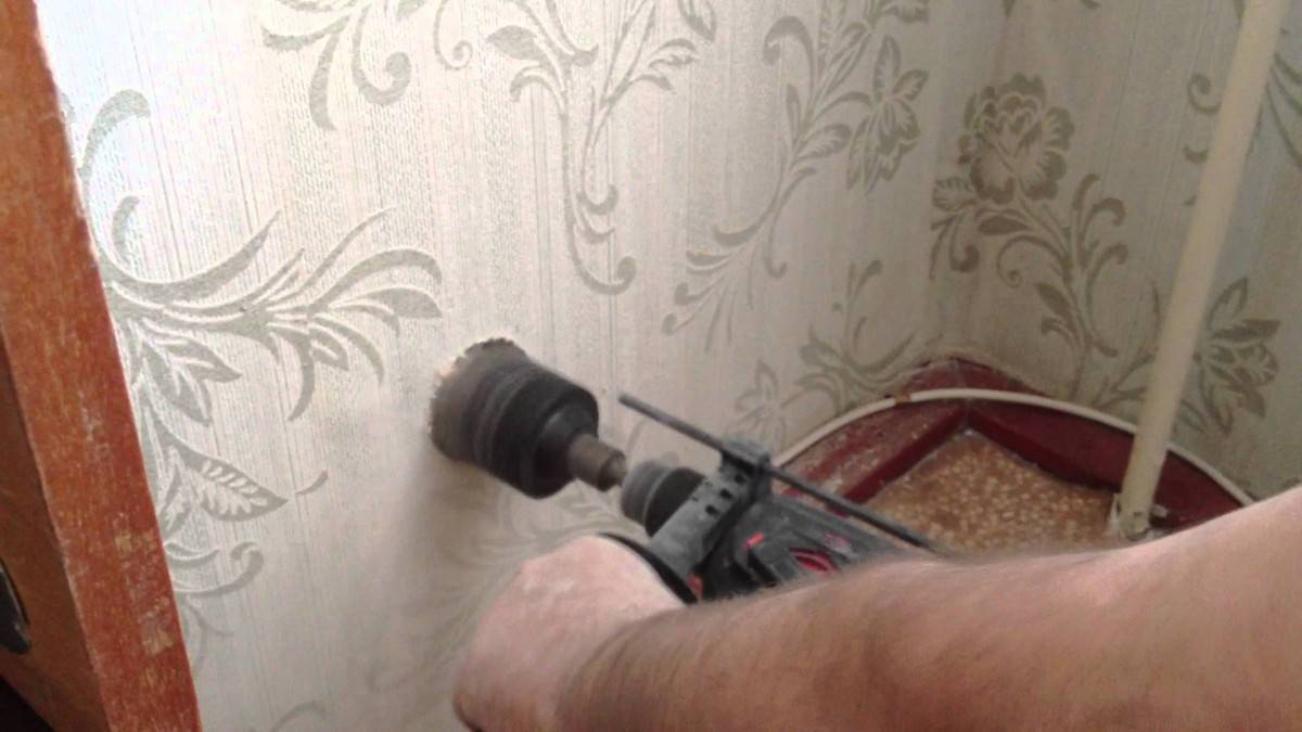 Высокая прочность бетона и его зернистая структура требует использования перфоратора или дрели с режимом ударного сверления. Впрочем, коронку с ударной дрелью можно использовать и против кирпичной стены. Специальная насадка по сравнению с обычным сверлом или долотом значительно облегчает и ускоряет процесс производства аккуратных с ровными стенками отверстий.