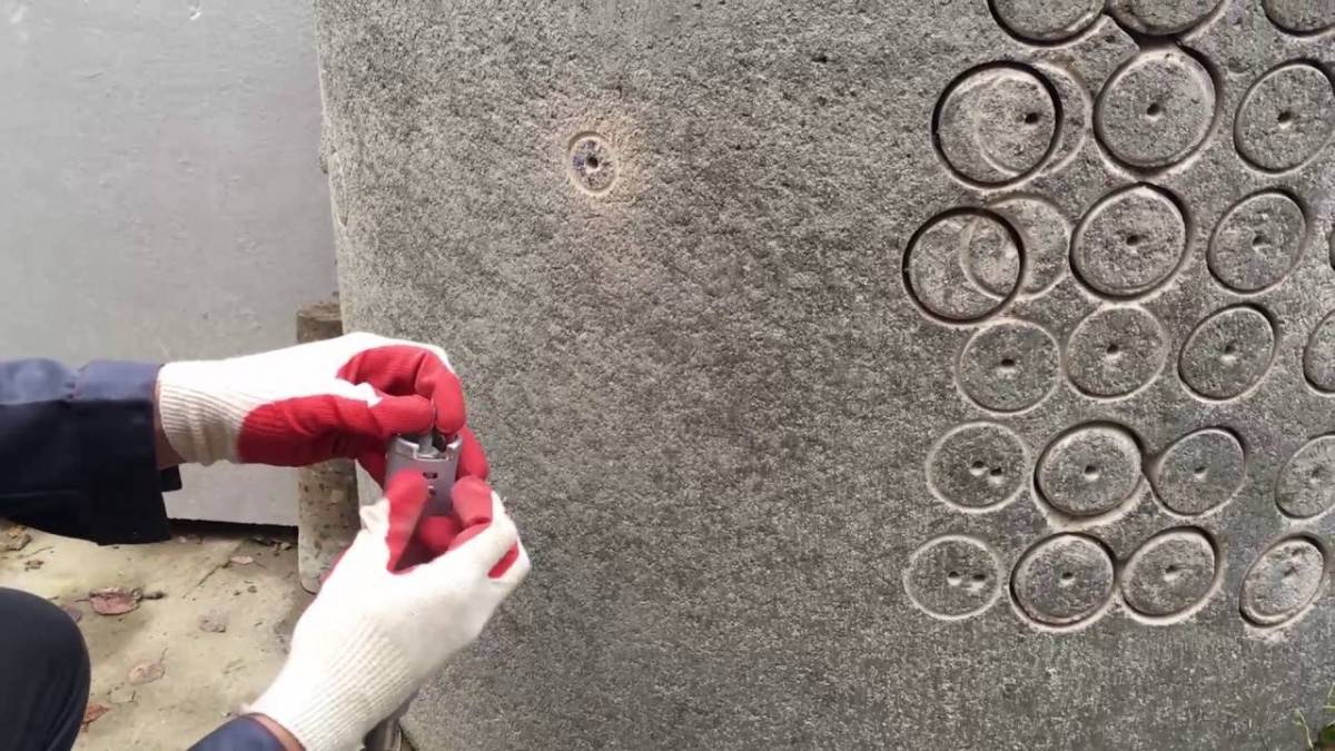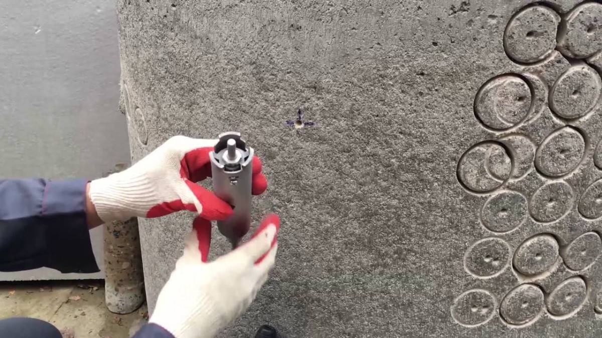 В завершении остаётся выключить перфоратор, извлечь высверленный цилиндрический камень из коронки и продолжить работу над другим отверстием.
