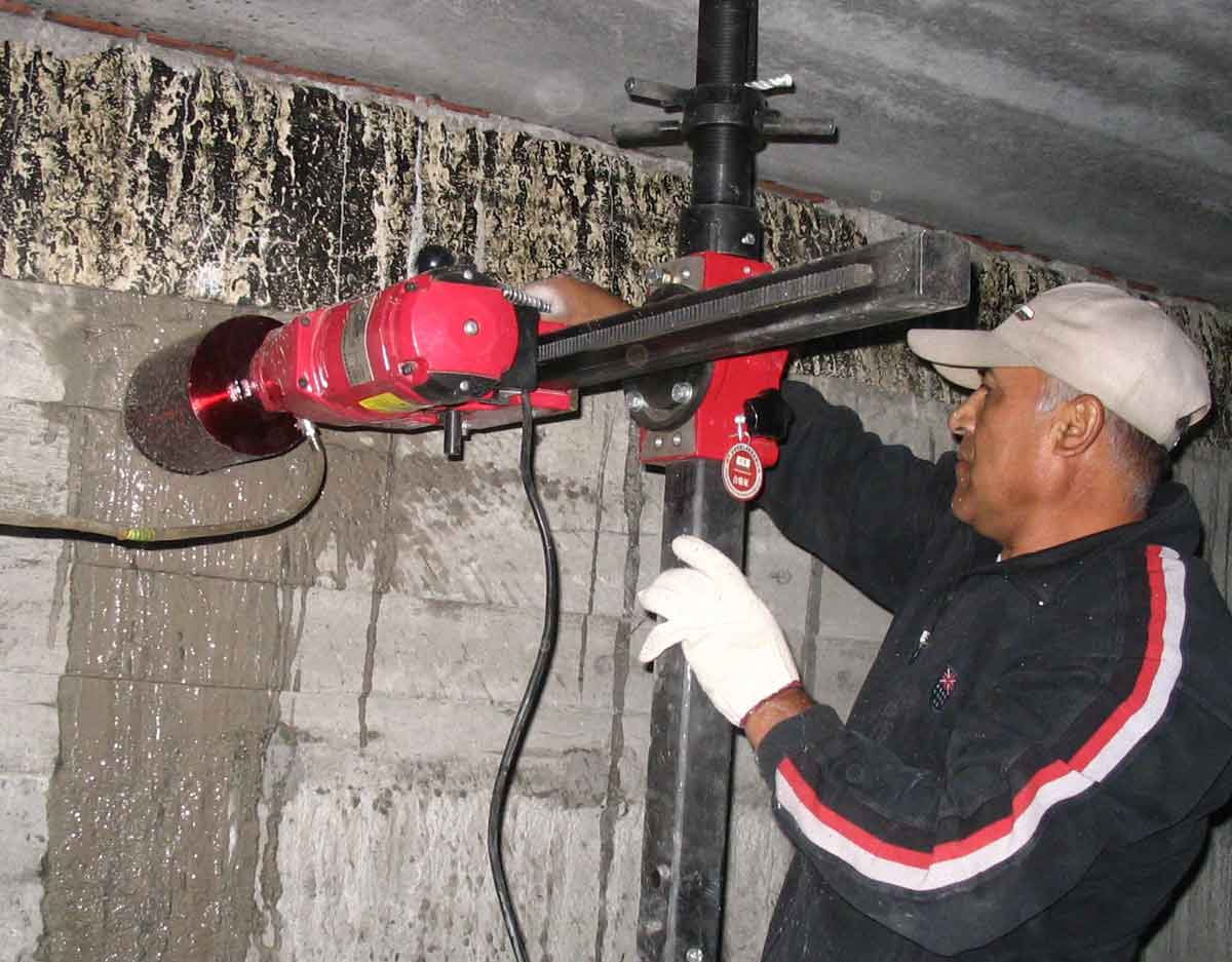 Фотография №5: сверление стены алмазной коронкой с фиксацией бура в горизонтальном положении