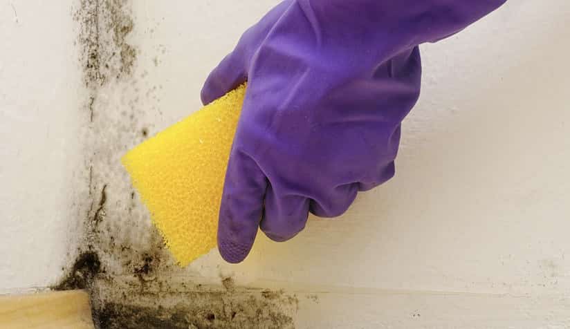 Во время очистки поверхность обильно смачивается – вода не позволит распространиться вредоносным спорам плесени по воздуху.