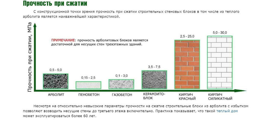 На прочность влияет много факторов. Важно, чтобы арболит был произведен из качественного цемента и обладал нормой прочности М25.
