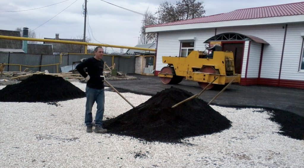 Прежде чем говорить об укладке нужно разобраться из чего же состоит асфальтовое покрытие. Асфальт — это смесь битума с сыпучими материалами: песок, щебень или гравий. В зависимости от назначения дорожного покрытия процентное соотношение компонентов может изменяться. Например, нет смысла использовать щебень для парковочной площадки возле дома, так как он позволяет выдержать высокое давление, что необходимо для покрытия дорог общего пользования и автомагистралей. Для обычных дорожек и автомобильных площадок рекомендуется использовать до 10% щебня из-за отсутствия большой нагрузки на покрытие.