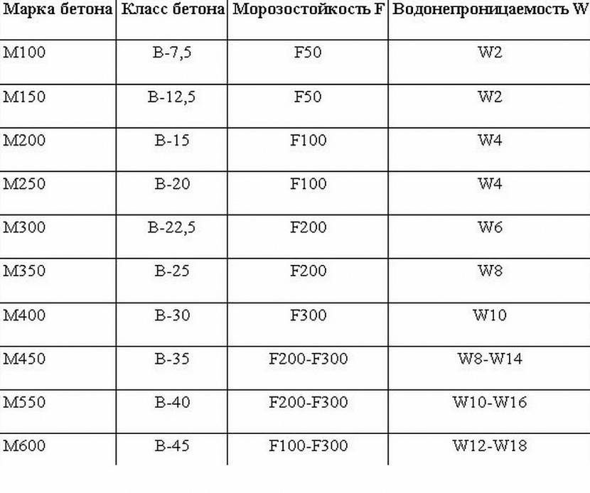 Таблица марок бетона и классов бетонаИсточник trakbeton.ru