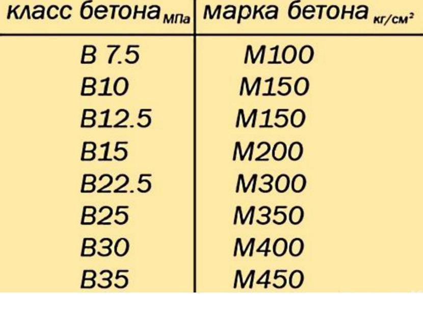 Марка и класс бетона