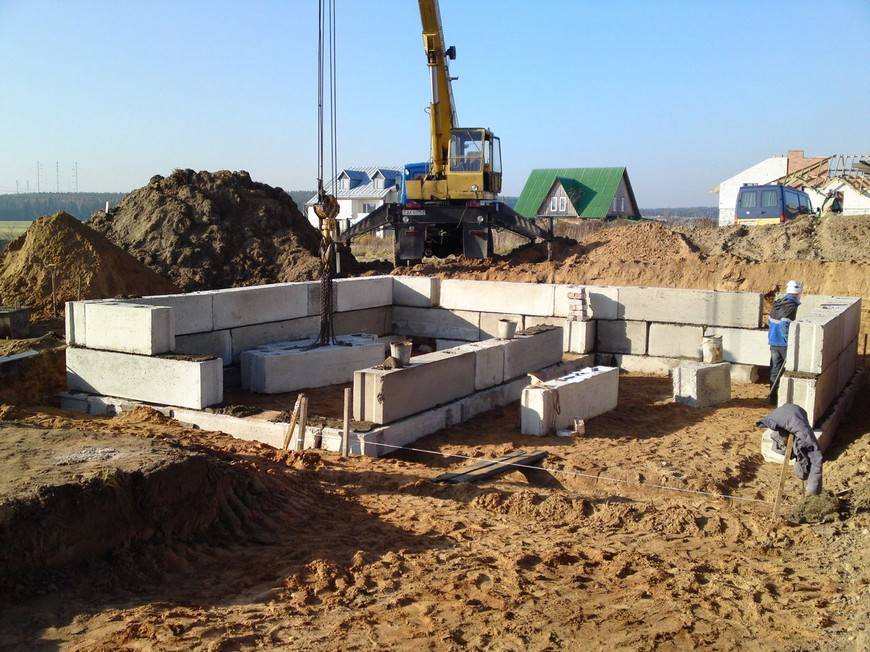 Если основание выкладывают из блоков большого размера, то может понадобиться специальная техника.