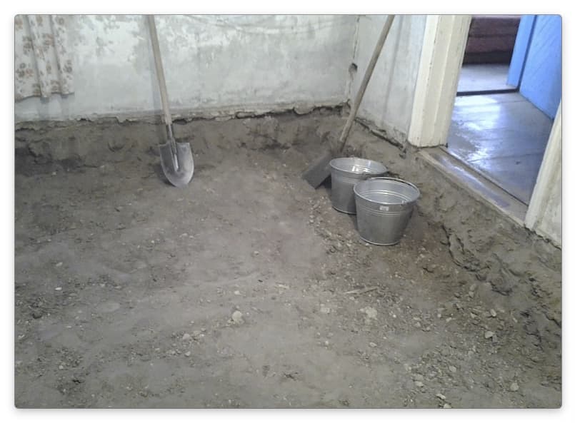 Возводя бетонные полы по грунту, основанием для всей конструкции должна быть ровная и плотная площадка без остатков растительности, корневой системы и строительного мусора. «Точкой отсчета» для определения объема земляных работ берут уровень порога.