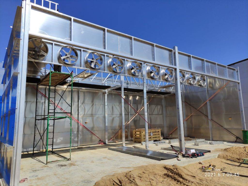 Движение разогретого воздуха и его обмен обеспечивают специально подобранные осевые вентиляторы с двигателями в тропическом исполнении, предназначенные для работы в условиях высокой влажности и температуры. При этом крыльчатка и лопасти, используемые в вентиляторах, изготовлены из алюминиевого сплава, что значительно снижает вероятность поломки или неисправности оборудования.
