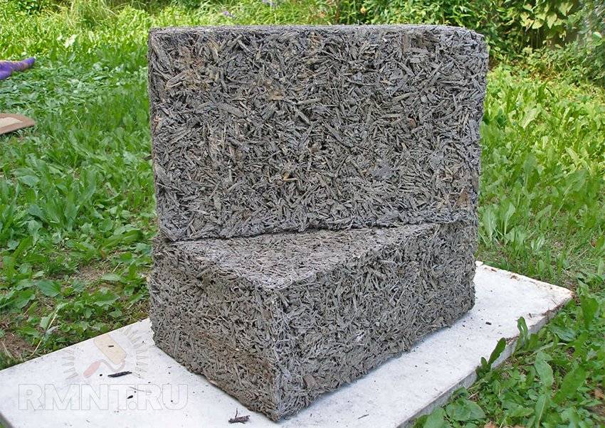 - цемент, опилки (1 : 10–15) и вода (столько, чтобы появилась пластичность пластилина, но тесто не возвращало лишнюю воду при сжимании);