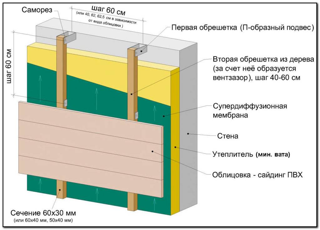 - воздушно-вентилируемая прослойка для удаления влаги с поверхности материала устраивается между теплоизоляцией и обшивкой и принимается толщиной не менее 50 мм.