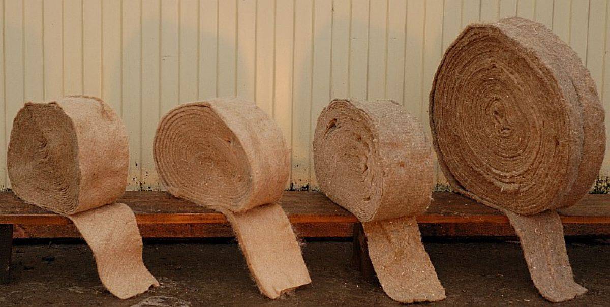 Джут используется для первичной и вторичной теплоизоляции дома. Обладает высокой прочностью, износостойкостью, эластичностью и практичностью. Он укладывается в межвенцовые швы с фиксацией на скобы.