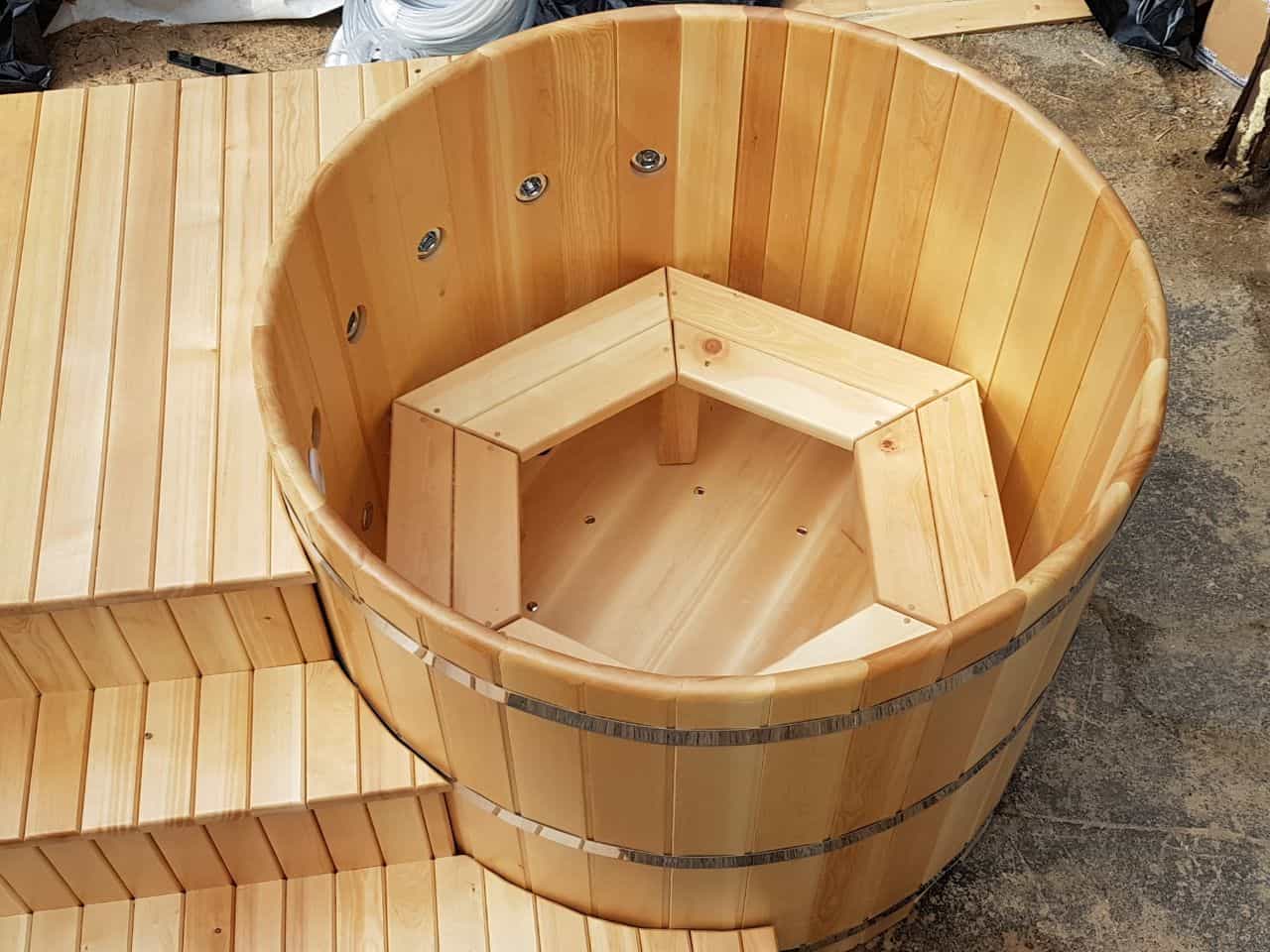 Как уже было сказано выше, баня обязательно должна содержать два элемента – круглую бочку с водой и емкость с опилками. Под фурако обычно располагается печка из нержавейки, которая будет нагревать и поддерживать температуру воды.