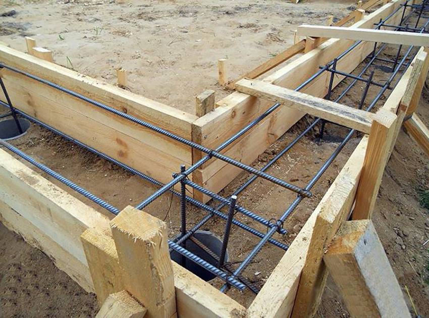 - Выдерживают определенное время, необходимое для застывания бетона, и демонтируют опалубку. Рекомендованная высота ростверка – не меньше 30 см, ширина – примерно 40 см (немного шире толщины стен здания).