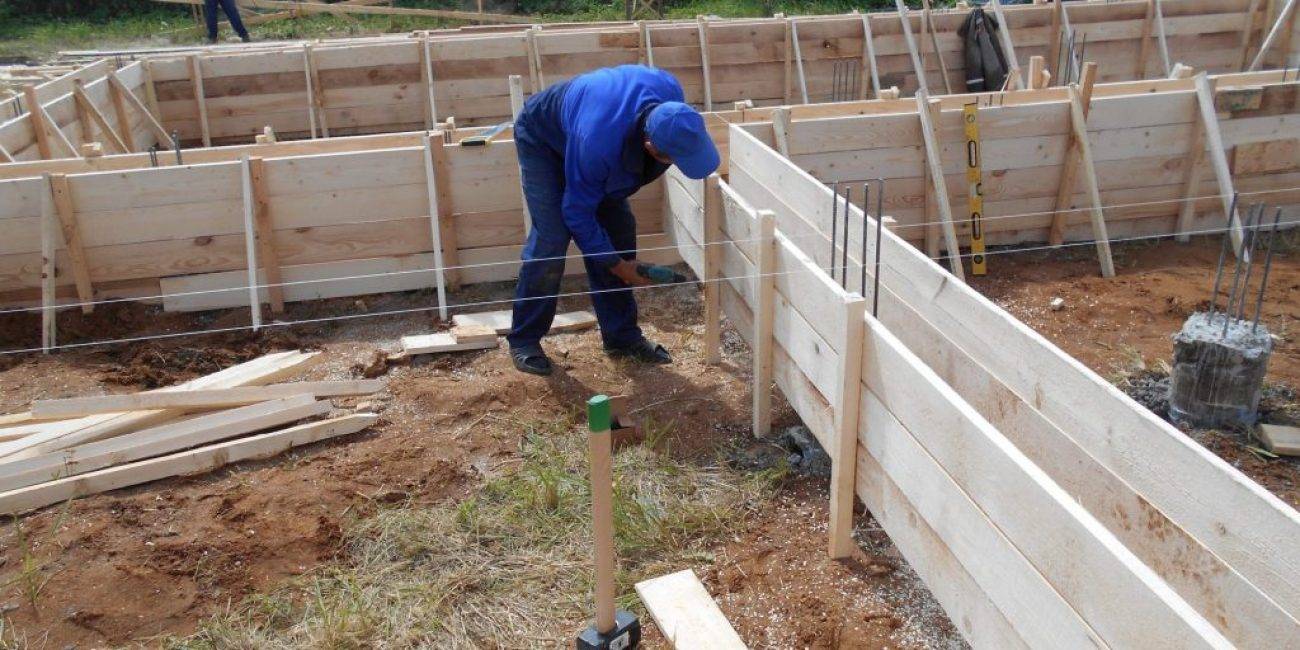 Устройство фундамента включает в себя изготовление опалубки. Изготовить, а потом установить её на строительной площадке самостоятельно вполне возможно, выполняя несложные правила.