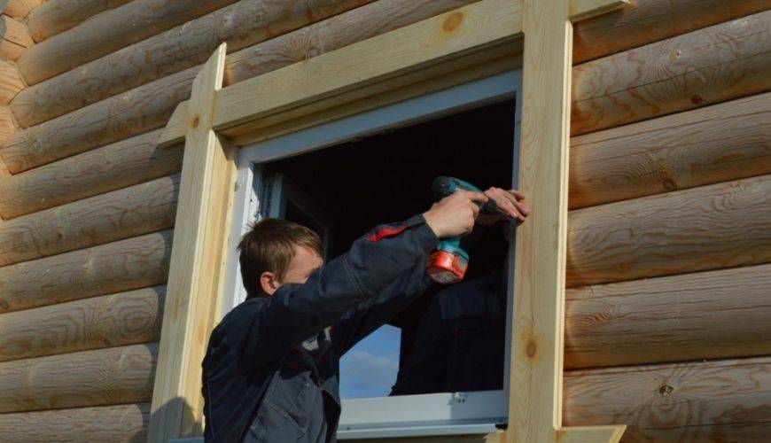 Поверхность деревянного сруба может быть идеально ровной (если стена покрыта доской) или состоять из выпуклых выступов (если дом из бруса). В зависимости от этого будут использоваться различные методы и способы крепления при обрамлении оконных проемов.
