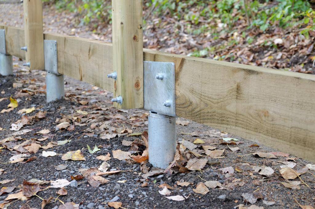 - Чтобы скрепить ряды шпал, рекомендуется просверлить сквозные отверстия и вбить арматурный стрежень.