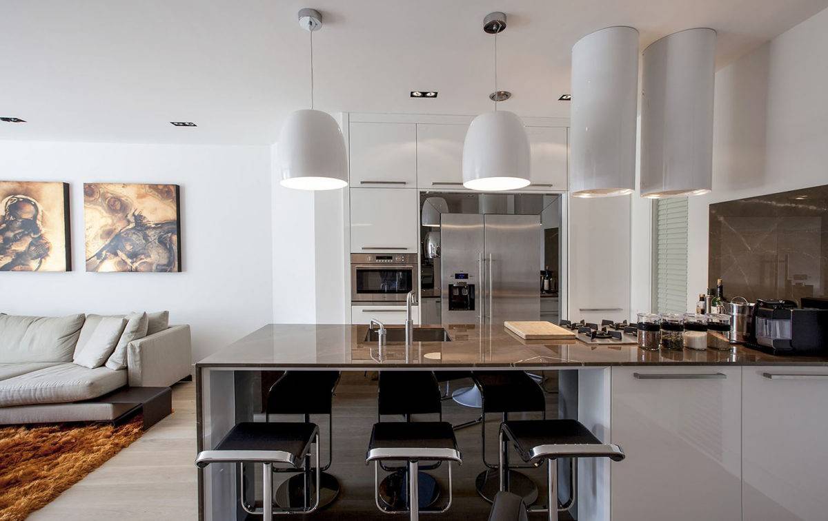 Барной стойкой со стульями. Для маленькой студии она может заменить обеденный стол, а в большой станет самостоятельным элементом интерьера.
