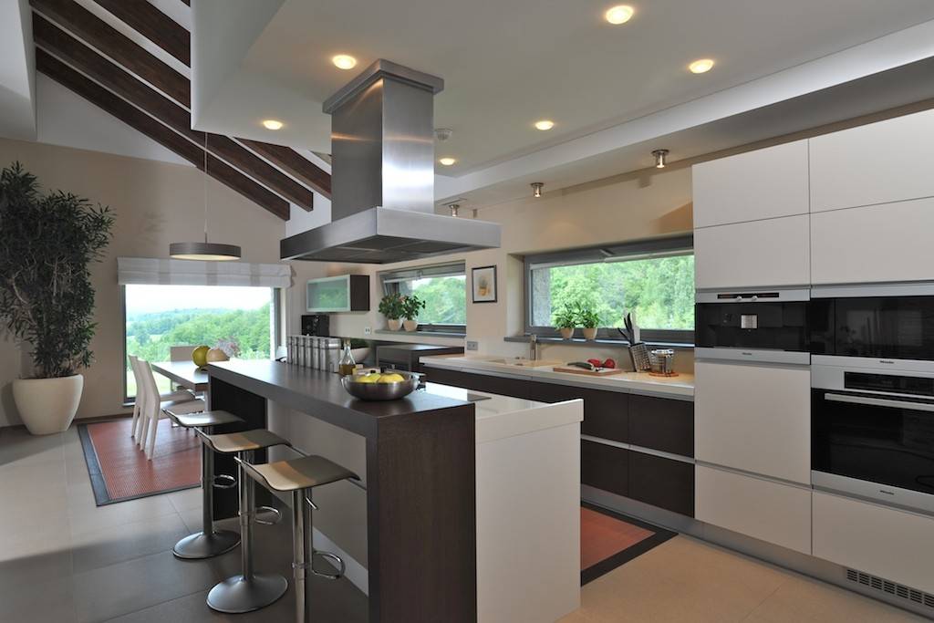 - кухню нужно оборудовать сильной вытяжкой, чтобы в комнате не ощущался запах пищи;