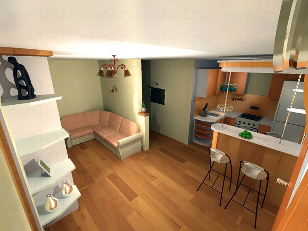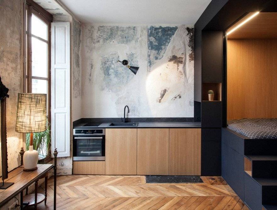 Это не позволит захламить площадь, что очень важно при ограниченном пространстве. Но дизайн студии 30 кв м и более может предполагать даже полноразмерные кухонные гарнитуры