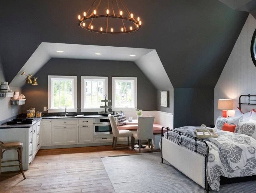 Обязательно рекомендовано обратить внимание на то, как будут размещаться зоны (для работы, отдыха, приготовления и употребления пищи). В большинстве случаев комфортная обстановка достигается за счет использования современного стиля, уютной мягкой мебели в зонах для отдыха, многофункциональной кухни. Особенный шарм придается с помощью многоуровневого освещения