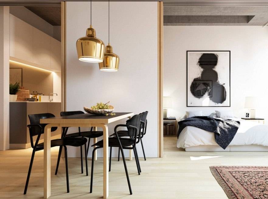 Проект квартиры студии с кухней подразумевает соблюдение некоторых правил: