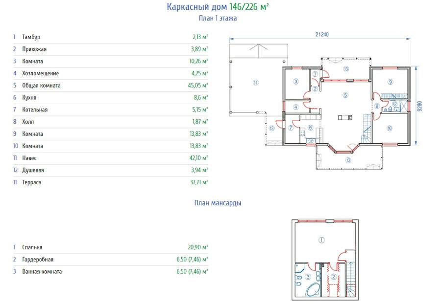 Преимущество таких строений – быстрые сроки монтажа, обычно их возводят за сезон. Чаще всего весь процесс не занимает больше 3 месяцев. Для примера можно привести проект каркасного дома с мансардой.