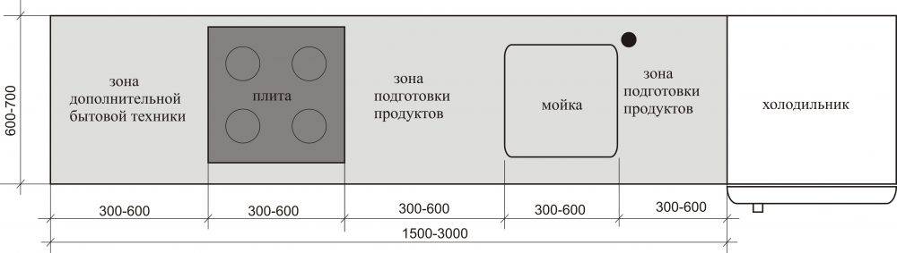 При планировке кухни необходимо учесть функциональные зоны кухни