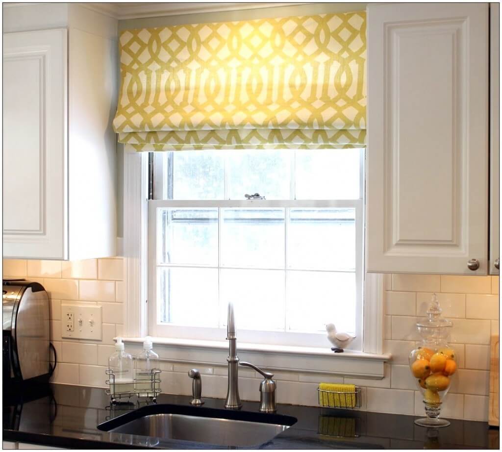 Достаточно популярным современным решением для небольшой кухни являются жалюзи, тканевые ролеты, римские шторы на кухню. Они станут лаконичным обрамлением оконного проема.