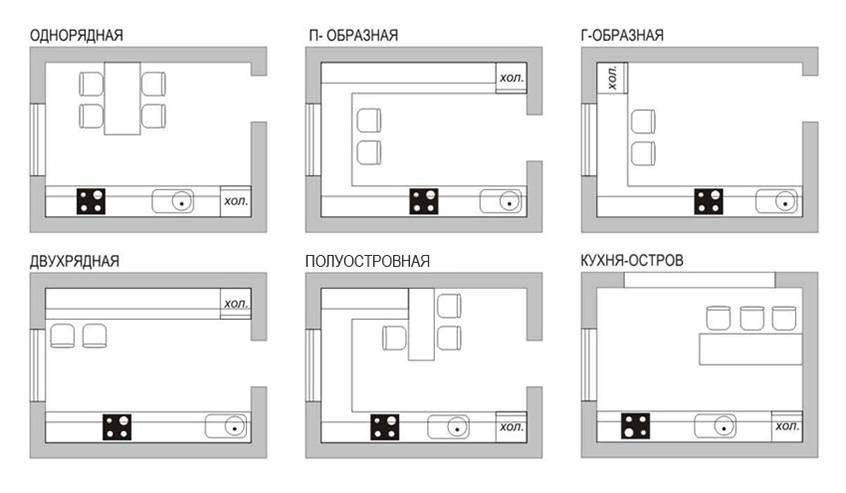 Варианты планировки кухонь