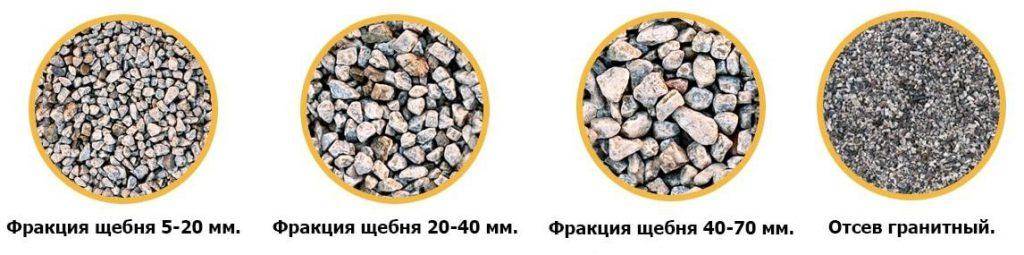 Под фракционным составом элементов понимают средний размер зерен. Для формирования фундамента используется фракция щебня в пределах от 5 до 40 мм. В качестве промежуточного значения выступает фракция от 10 до 20 мм.