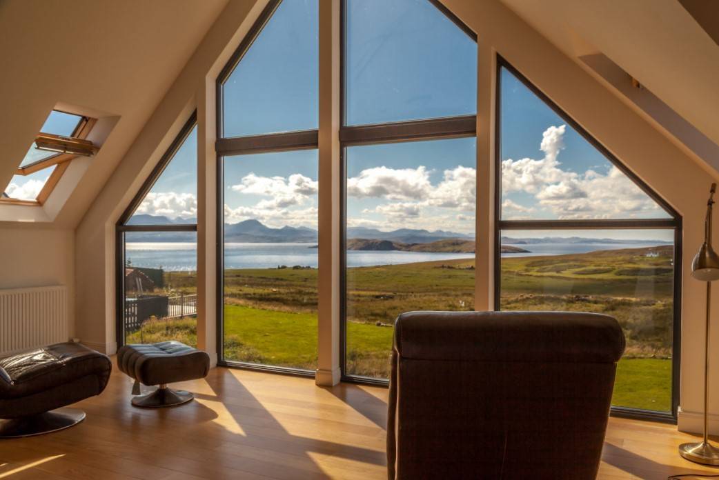 - Панорамные окна могут вызвать дискомфорт, но это легко можно решить при помощи штор, тонировки или жалюзи.