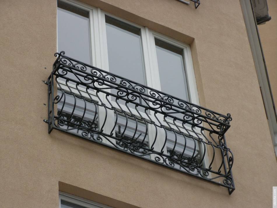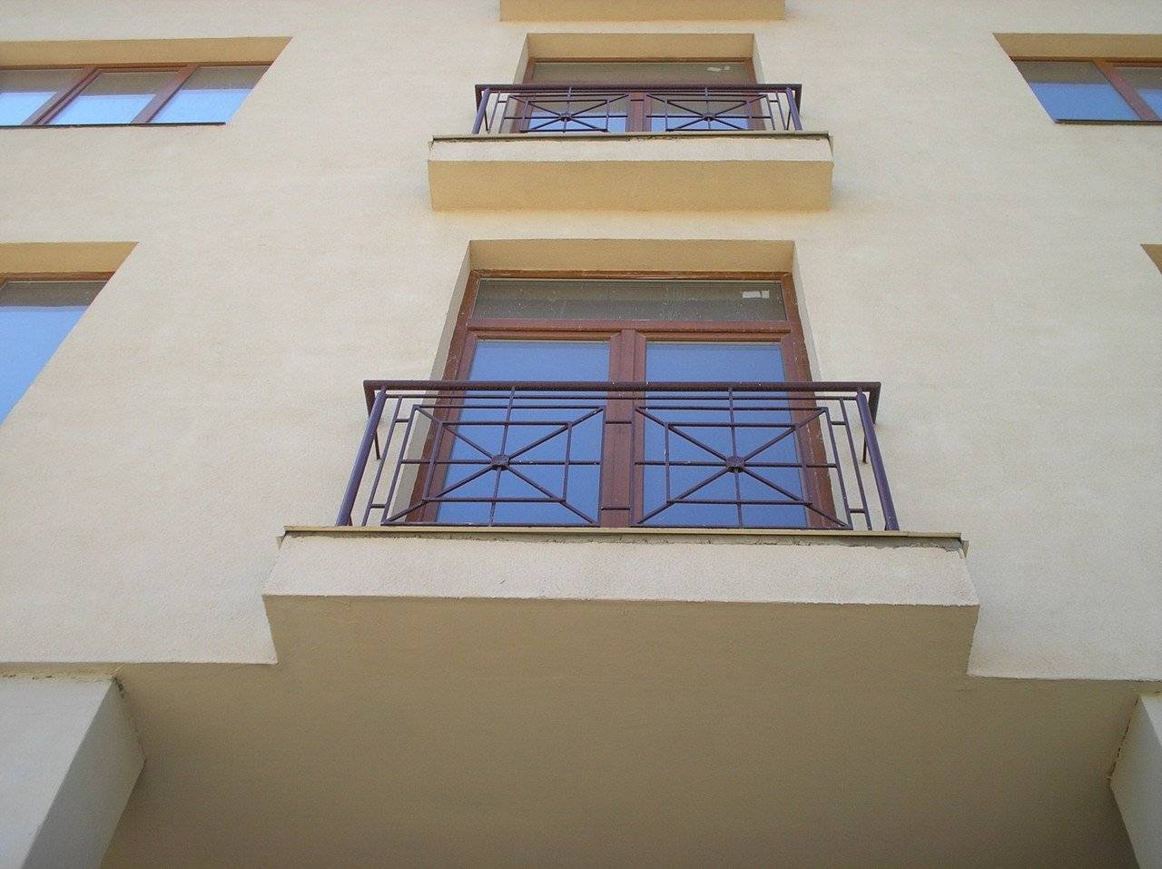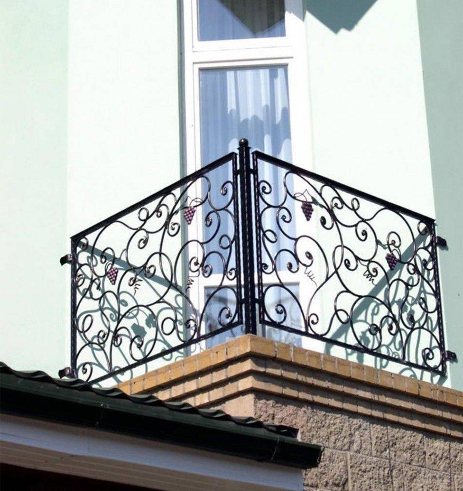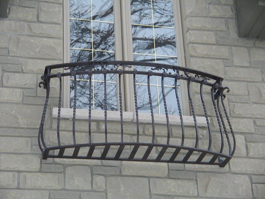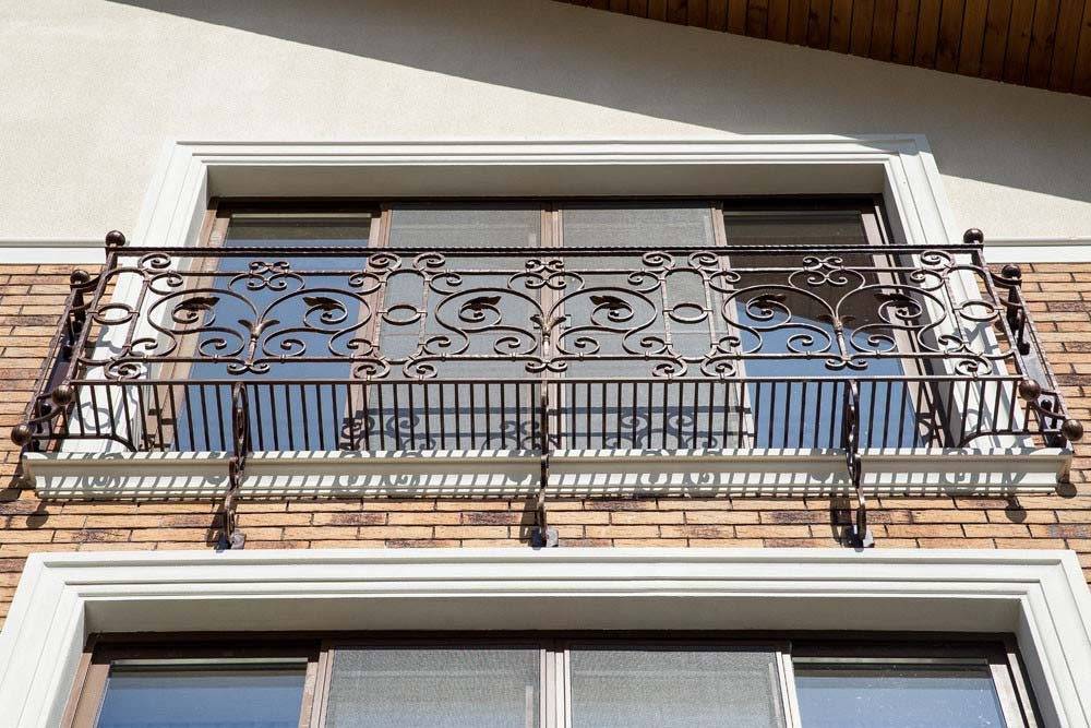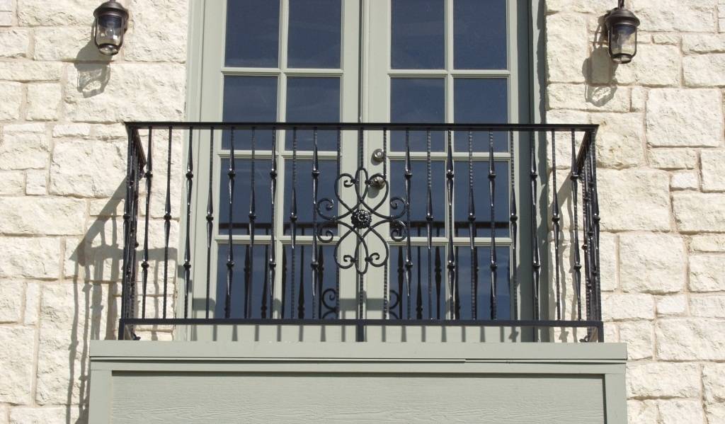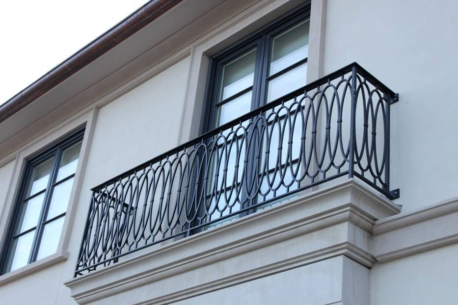 Кованый французский балкон с выступом обладает узкой площадкой, ширина которой чуть больше длины ступни. Такое компактное основание позволяет “выйти на балкон”.