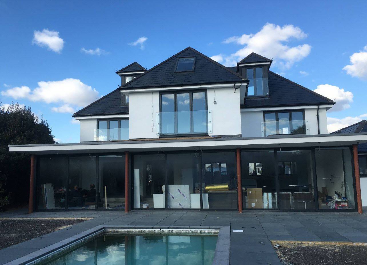 Современный вариант отличается отсутствием парапета и наличием панорамным остеклением от пола до потолка.