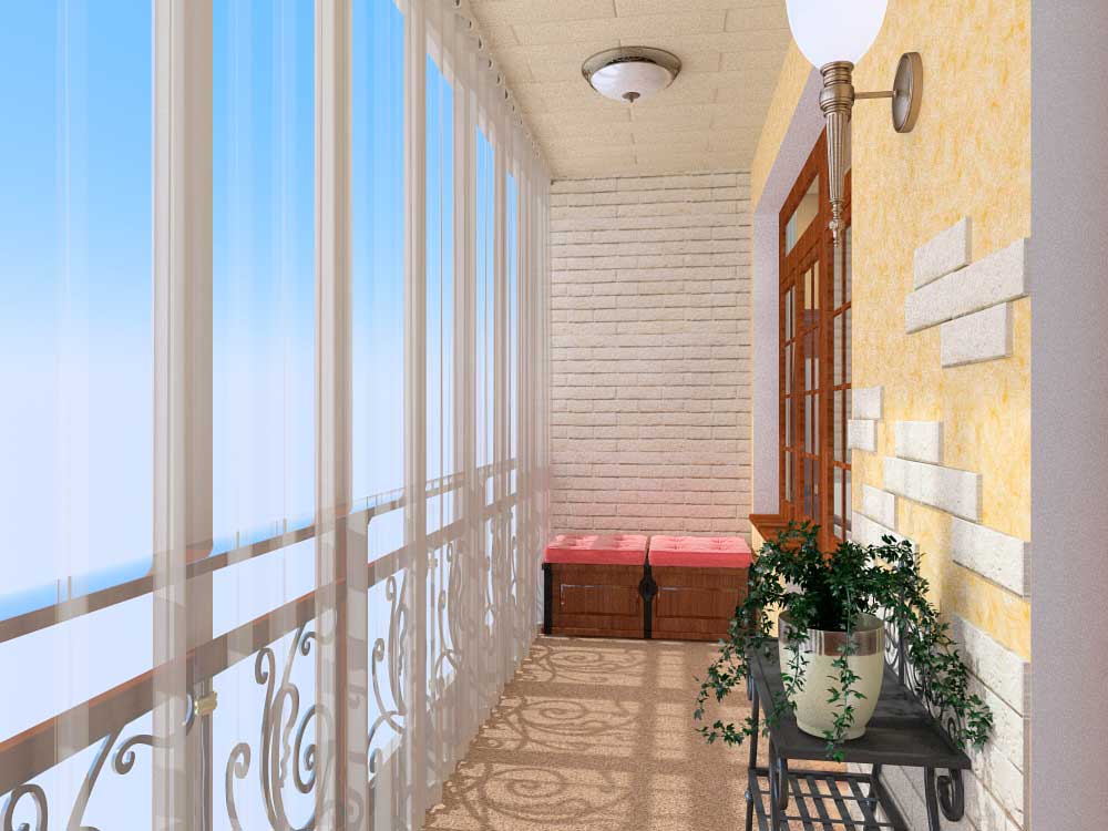 Неуместно будет выглядеть отделка балкона пластиком, это искусственный материал и помещение, отделанное ним, потеряет необходимый стиль.