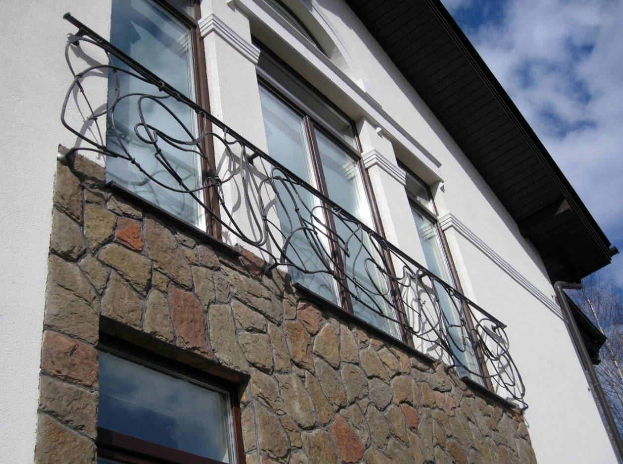 Классический вариант – это оконный или дверной проём с декоративными парапетом из металла. Зачастую несущая плита не превышает длины стопы, но иногда доходит максимум до полуметра. Такая конструкция не предполагает продолжительный отдых на свежем воздухе.