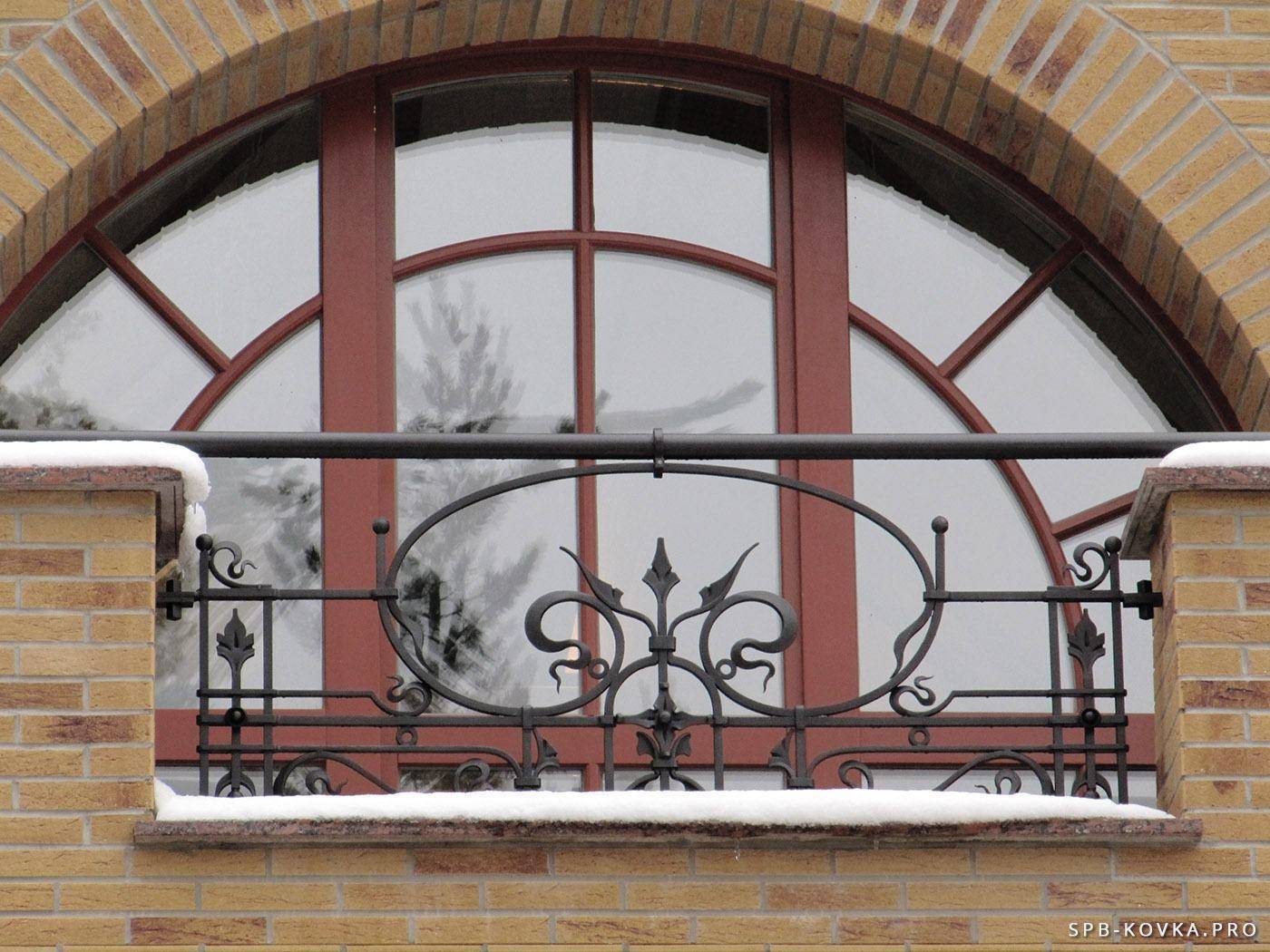 Чтобы создать единый ансамбль, можно установить кованые решетки на окна. Они должны быть выполнены в одном стиле с ограждением.