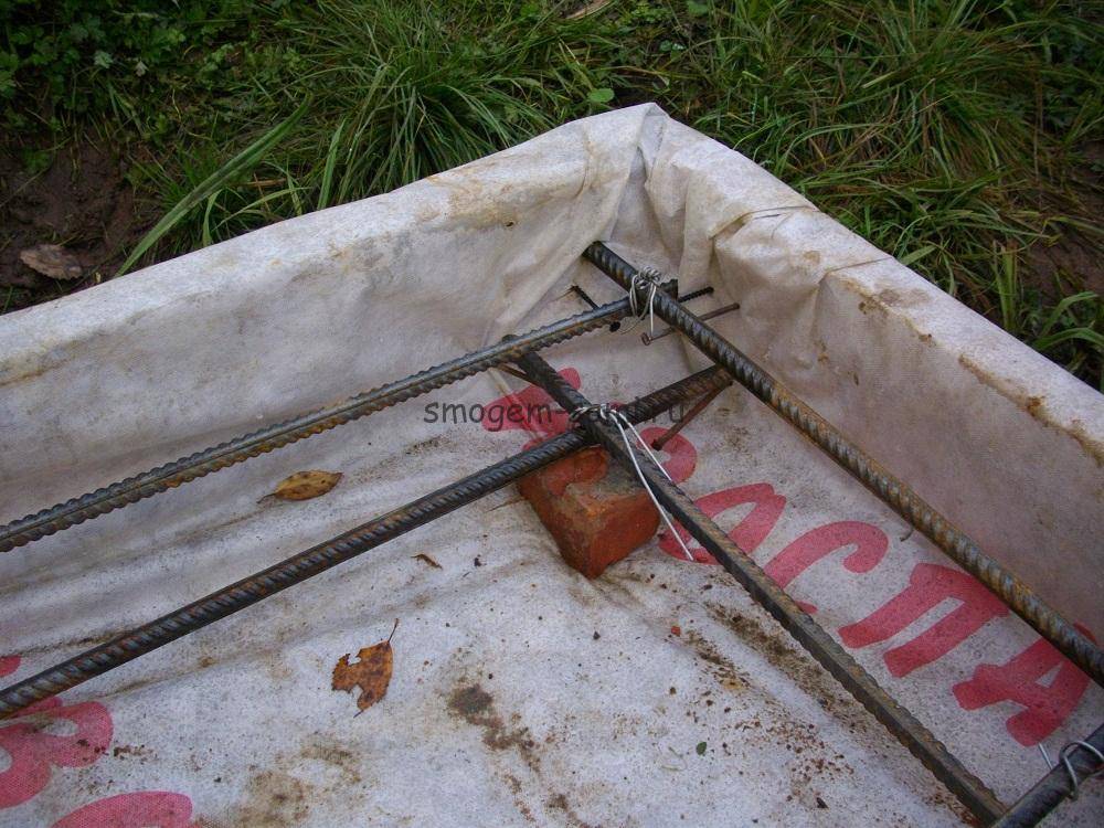 - В пределах территории, очерченной опалубкой, укладываем арматуру.