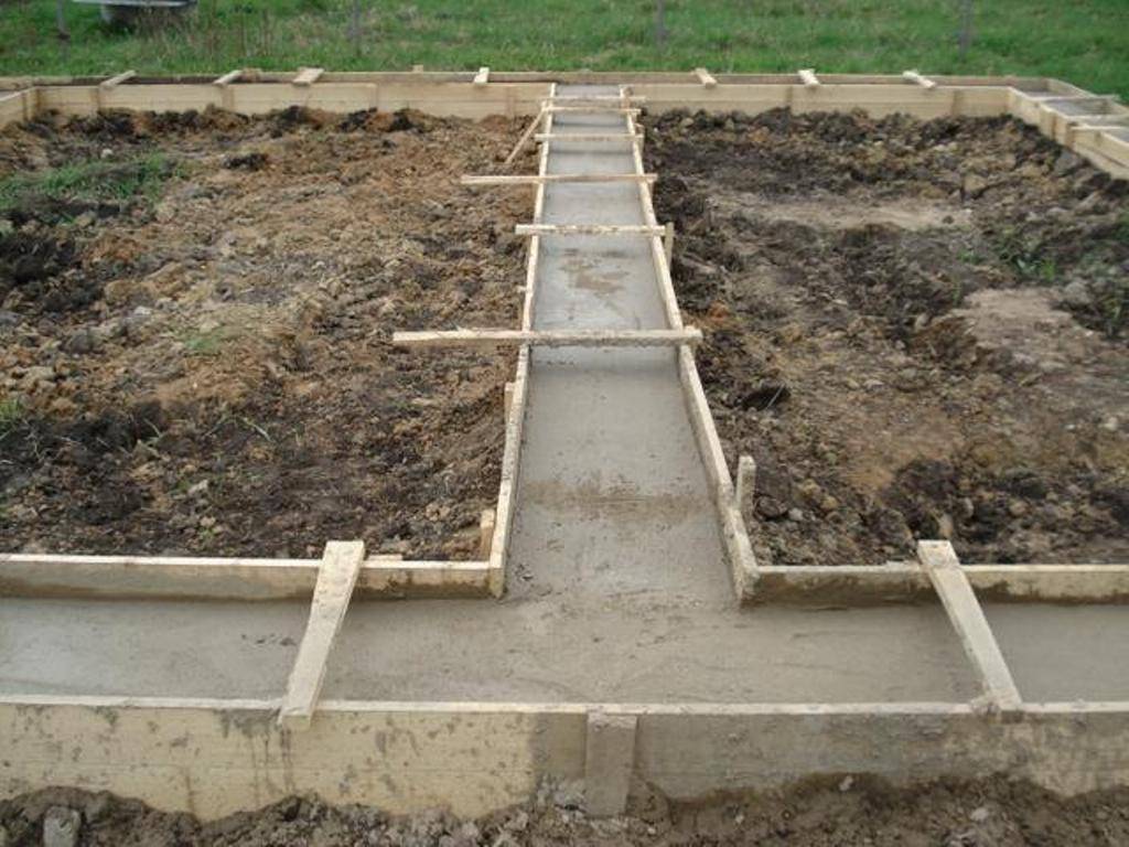 - По периметру строения, а также под несущими стенами роется траншея. Дно ее заполняется песком, слой которого может составлять 10-15 см. Выполняется тщательная трамбовка.