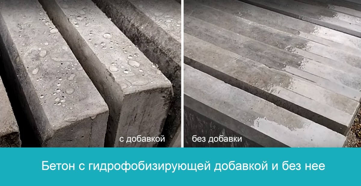 Некоторые гидрофобизирующие добавки в растворе повышают его плотность и снижают пропускание воды просто за счёт того, что в бетоне меньше пор. В так называемом гидрофобном бетоне процентов на тридцать вырастает и прочность на сжатие.