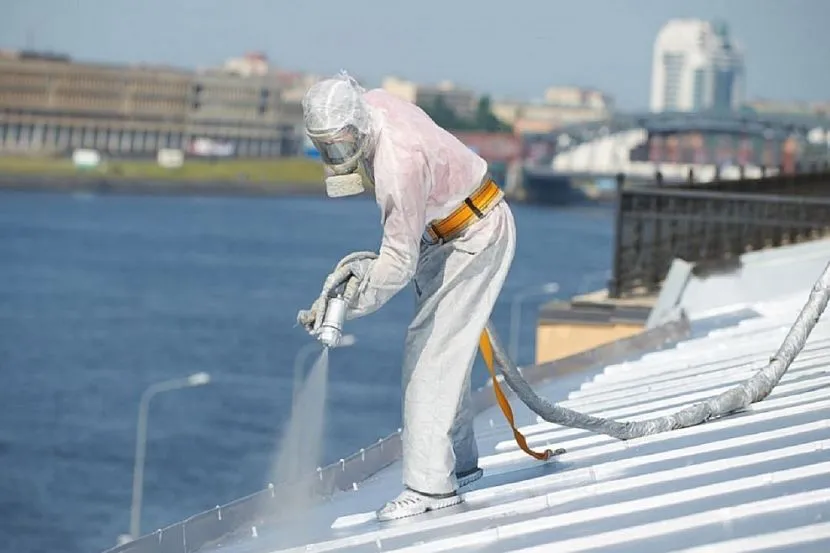Степень предварительной подготовки поверхности зависит от состояния кровли. При удовлетворительном состоянии старого покрытия его подготовка сводится к очистке от мусора и пыли. В иных случаях перед нанесением полимочевины все отслаивающиеся и дефектные участки подлежат вскрытию или удалению. Разумеется, ремонт кровли полимочевиной возможен при определенной степени поврежденности кровли, полностью разрушенную кровлю восстановить только нанесением полимочевины вряд ли удастся. Обычно при сильных разрушениях требуется восстановление утеплителя, для чего может быть использован напыляемый пенополиуретан (ППУ).