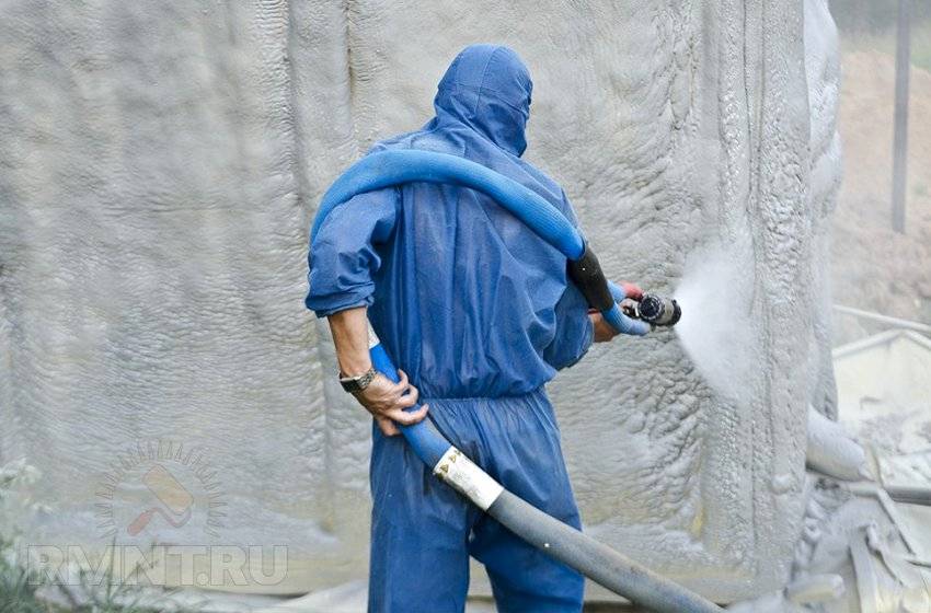 - Напыление выполняется с помощью специальных устройств, которые позволяют обработать за короткое время площадь 300-400 м2.