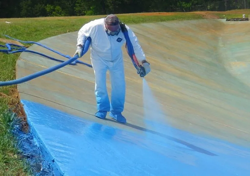 - Процесс формирования покрытия на основе полимочевины очень простой. Во время работы нет необходимости подгонять материалы, крепить их, герметизировать стыки.