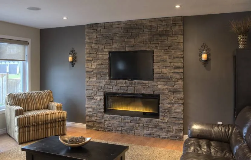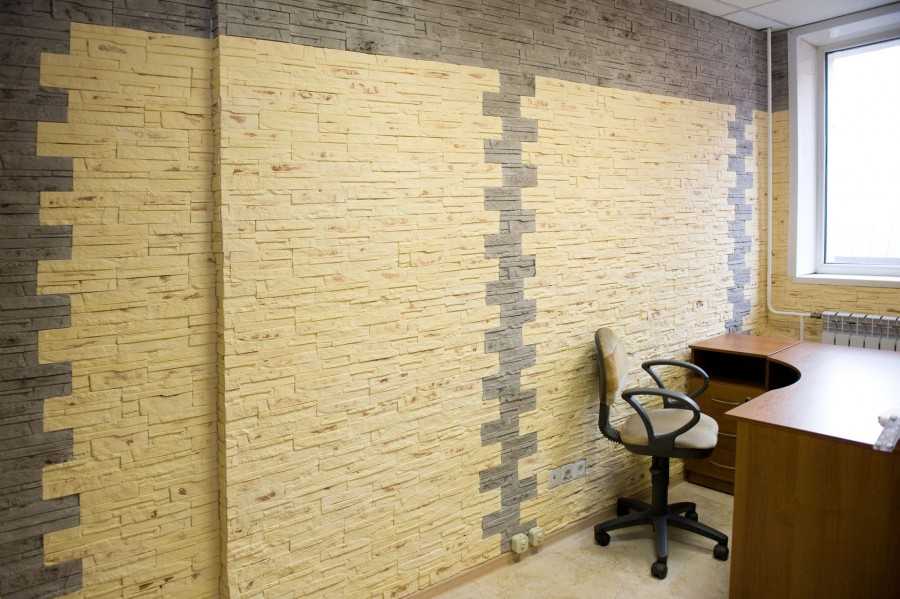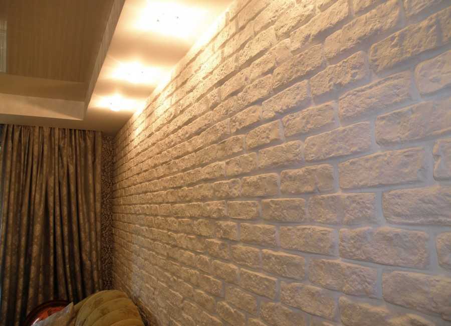 Ровная идеальная стена – лучшая поверхность для оформления искусственным камнем из гипса. Плитки, имея размер в среднем не больше стандартного кирпичика, при выкладывании на стену создают целостный образ, единое полотно без швов и зазоров.