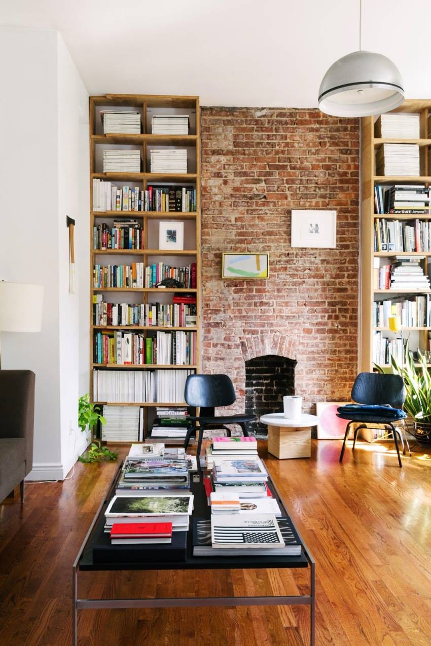Иногда из кирпича в больших комнатах выкладывают перегородки, которые оставляют «жить» в черновой отделке. Можно применить камень в точечных элементах декора. Для внутренних же отделочных работ его почти не используют.