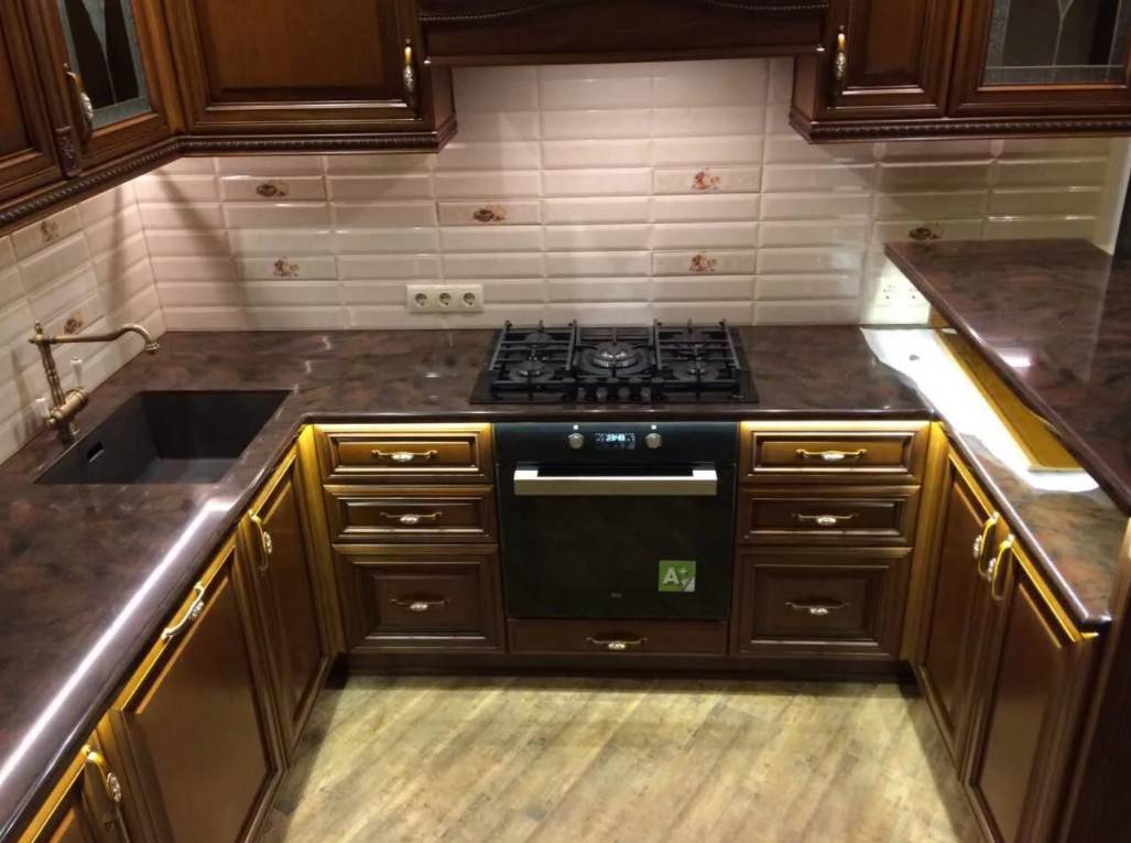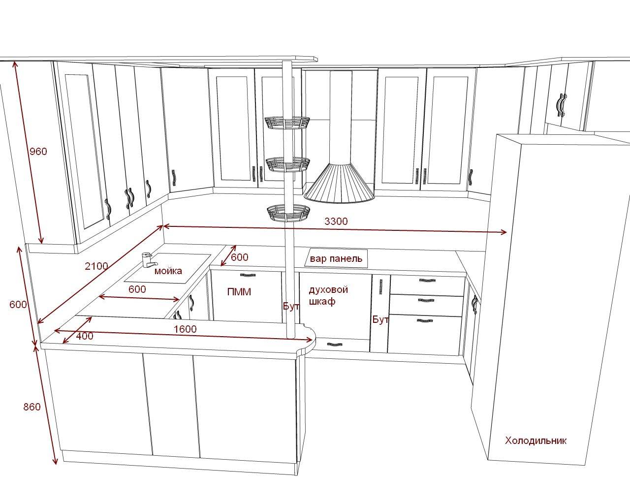 Кухонные гарнитуры могут иметь разную планировку. Лучше выбирать П-образные модели.