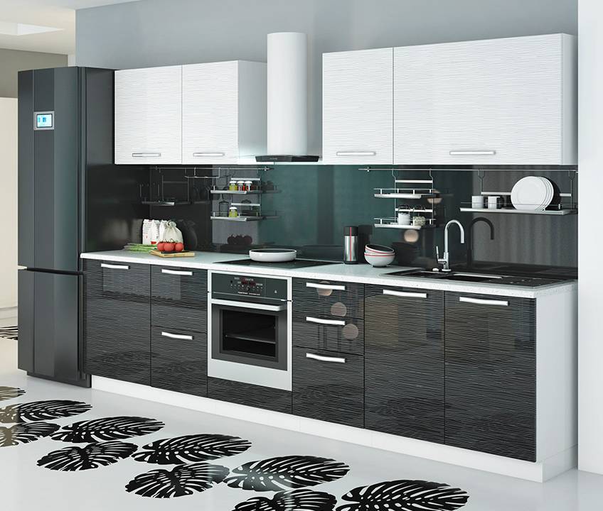 Фактура должна иметь глянцевый характер. Это будет придавать дополнительный объем, поэтому позволит визуально увеличить площадь малогабаритной кухни.