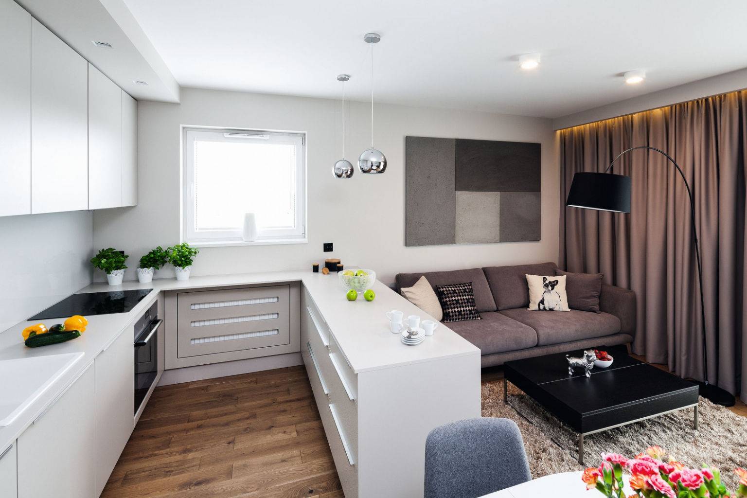 Современные идеи 2018-2019 в дизайне кухни-гостиной с зонированием