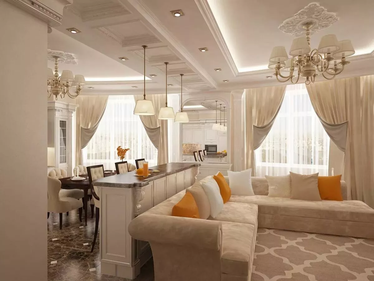 Композиция в деталях: люстры, шторы и ручки в классическом интерьере