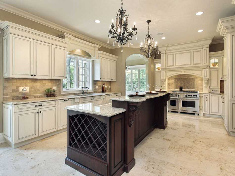 Освещение в классической кухне традиционно состоит из нескольких источников. В центре композиции – роскошная люстра, которая размещается либо четко по центру комнаты, либо над большим обеденным столом. Выбирай многоступенчатые и многоярусные конструкции с хрустальными подвесками или люстры в виде массивных подсвечников.