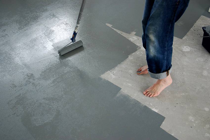 Процесс начинаем с уборки помещения. Поверхность следует очистить от грязи, песка, мелкой пыли, масляных и смоляных пятен. Трещины заделываем цементным раствором и даем полностью высохнуть. Затем пройтись строительным пылесосом. Далее необходимо прочитать в инструкции нужно ли грунтовать, если нужно, то обязательно наносим, так износостойкость повысится в разы.