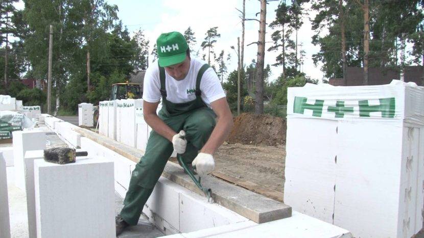 - Работы по устройству пенобетонных стен необходимо проводить на протяжении тёплого времени года с весны по средину осени, при температурах от +5 до +25 градусов.